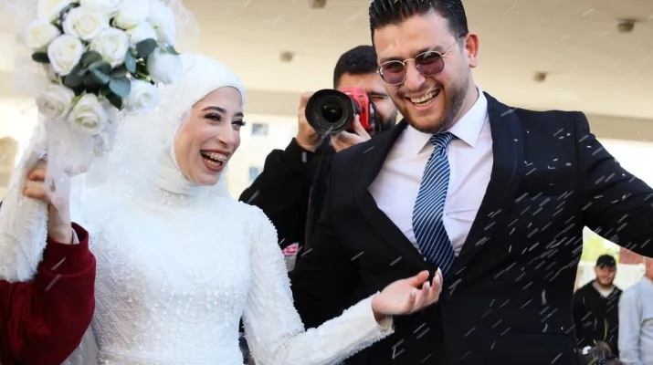 لم يستسلم العروسان الشابان لهذا الواقع القاسي، ففضّلا عدم انتظار انتهاء الحرب ليتما الخطوة التالية من شراكتهما المقدسة في الحياة، بل اختارا مواجهة هذه الظروف الصعبة معاً بصنع قصتهما الخاصة وعلى طريقتهما لتبقى ذكرى جميلة أضاءت وسط ذكريات مؤلمة، وحرصا على إشراك كل من يتقاسمون معهم خبز وملح النزوح لحظتهما الإستثنائية وفرحة العمر الذي قررا ان يمضيانه سوياً.