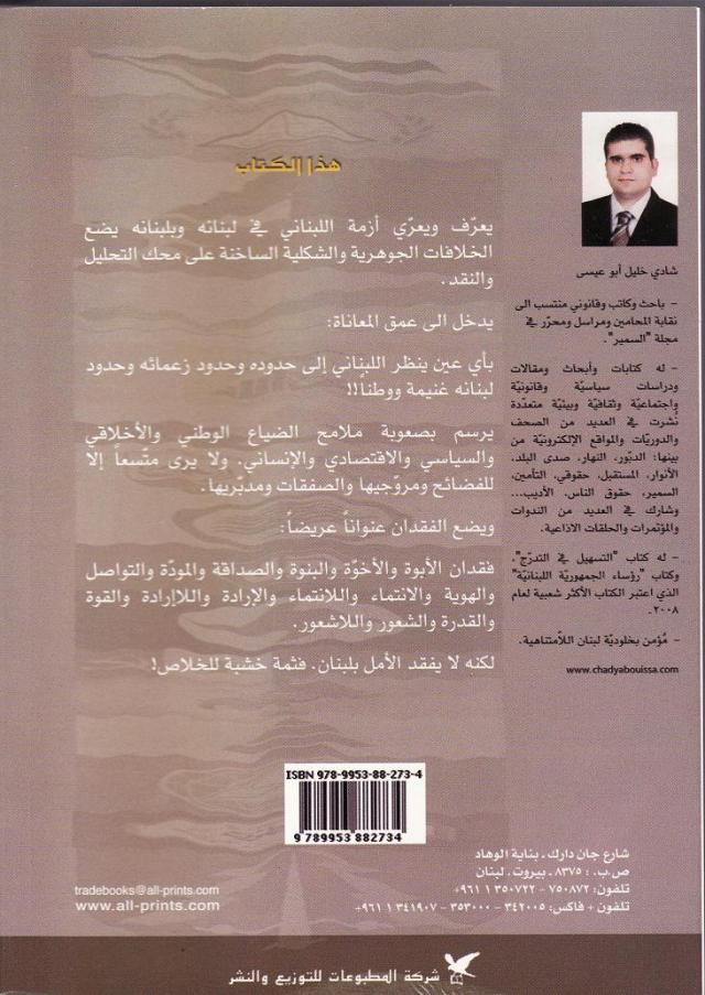 صدر كتاب “ الولايات غير المتحدة اللبنانية " للمحامي والكاتب شادي خليل أبو عيسى، ضمن إصدارات شركة المطبوعات للتوزيع والنشر في العاصمة العالمية للكتاب بيروت 2009. وهو يقع في 408 صفحة من الحجم الكبير، حيث يشمل أقسام متعددة ومتشعبة تتصدرهما مقدمتان، الأولى للشاعر والفيلسوف روبير غانم، الذي ركز على أهمية الكتاب من كافة النواحي السياسية والاجتماعية والفكرية والثقافية والانسانية، والثانية بقلم المؤلِّف؛ ثم أجزاء عدّة وقوائم توثق المصادر والمراجع والمصطلحات والمحتويات.