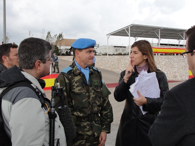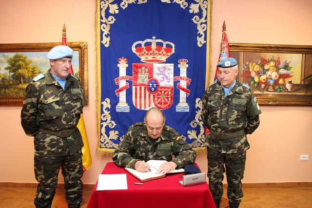 زار الملك الإسباني خوان كارلوس الأول كتيبة بلاده العاملة ضمن قوات "اليونيفيل" المعززة في جنوب لبنان في قاعدة ميغيل دي سيرفانتس في سهل بلاط ـ قضاء مرجعيون مقر قيادة القطاع الشرقي، حيث وصل على متن طوافة تابعة لـ"اليونيفيل" يرافقه وزيرة الدفاع الإسبانية كارمن شاكون، وزير الدولة ميشال فرعون ممثلاً الحكومة اللبنانية، قائد هيئة الأركان العامة لوزارة الدفاع الجنرال خوليو رودريغز، قائد القوات البرية الجنرال البريه فولخينسيو كول، قائد غرفة العمليات في الوزارة الجنرال دومينغز بوخ وسفير إسبانيا في لبنان خوان كارلوس غافو.