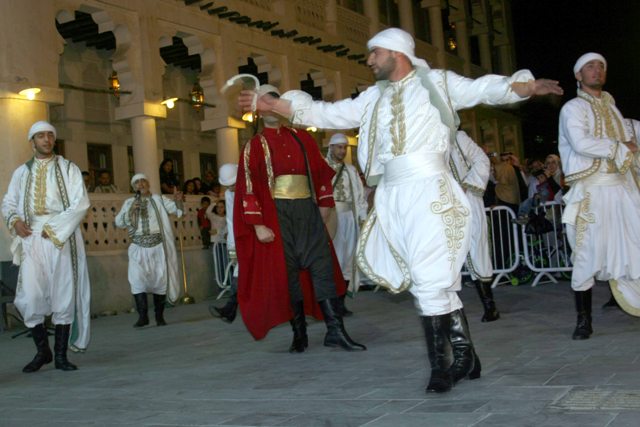 قدمت فرقة الفلكور اللبناني يوم امس عرضا للعرس اللبناني التراثي من ضمن فعاليات "ربيع سوق واقف" الذي يقام في الدوحة في مثل هذه الفترة من كل عام وتشارك فيه فرق فنية من كافة انحاء العالم.