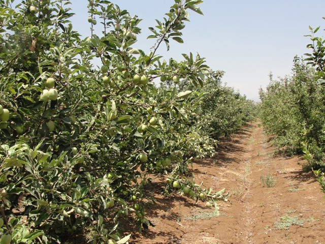 وقد جُهز البستان بشبكة ري على "النقطة"..