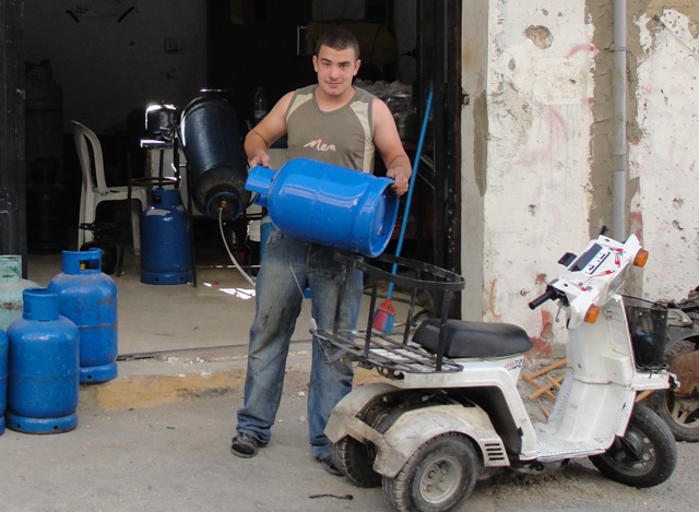 أي أنه يقدّم خدمة "ديليفري غاز" مقابل ألف ليرة إضافية فقط على السعر الرسمي للقارورة، مهما كان بعد المسافة وفي أي طابق كان المنزل، كما يقول.