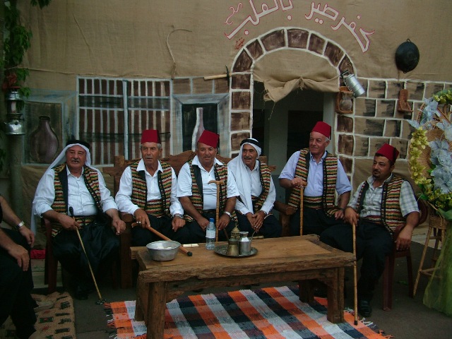 وتآلق العرس برقصة السيف والترس التي تقدمت موكب العرسان الذين زفوا سيرا على الأقدام في أزقة البلدة،وخلفهم سار فاعليات البلدة بزيهم القروي ثم الرجال والشباب فالنساء، وما أن وصل الموكب الى باحة المدرسة حتى عقدت حلقات الدبكة على عزف الناي والمجوز ليختتم المهرجان بعشاء قروي تخلله أكلات التراث من الرشتاية الى المجدرة وكوسا بلبن والبقلة وغيرها وشارك الاهالي كلهم في تذوق الاكلات التراثية.