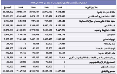 انطلاقاً من ذلك، أُرفق مشروع موازنة 2011 بمشاريع قوانين قطع حسابات الموازنة العامّة عن السنوات الماضية، بما فيها عاما 2004 و2005، إلا أن المفاجأة كانت بإحالة مشروع قانون «خفيف» يرمي إلى تسوية الحسابات المالية للأعوام من 2006 ولغاية 2009 ضمناً، إذ تضمّن مادّة وحيدة تنص على ما يأتي: